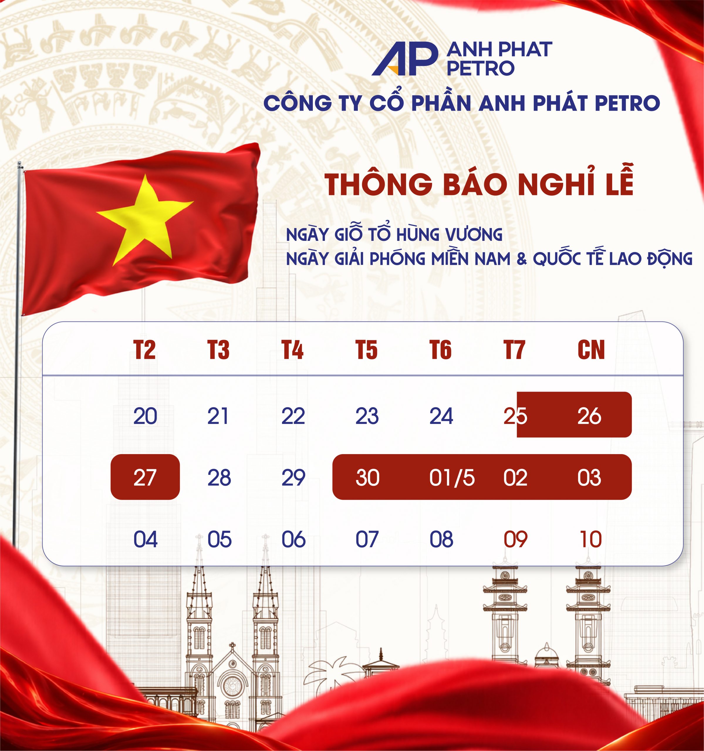 Tin doanh nghiệp & Tổng công ty, Tin tức CÔNG TY CỔ PHẦN ANH PHÁT PETRO THÔNG BÁO LỊCH NGHỈ LỄ GIỖ TỔ HÙNG VƯƠNG; NGHỈ LỄ 30/4 & 01/05/2026.