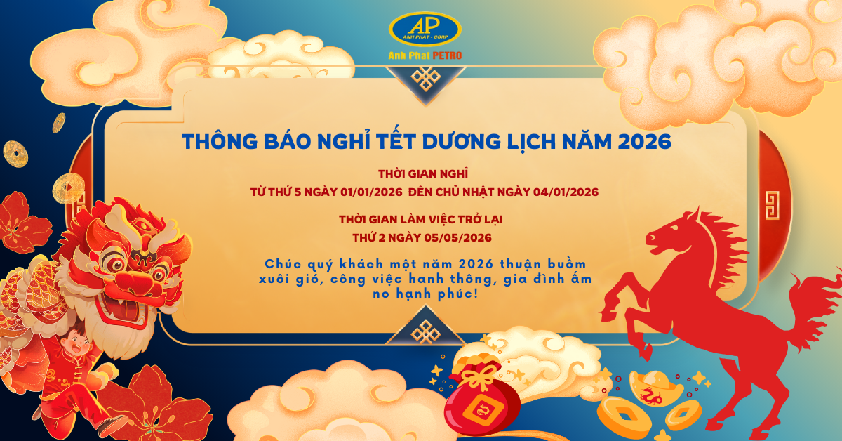 Công ty Cổ phần Anh Phát Petro xin trân trọng gửi đến Quý Khách hàng và Đối tác lịch nghỉ Tết dương lịch 01/01/2026 đối với khối văn phòng như sau: